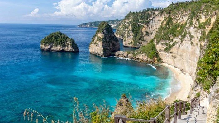 2. Atuh Beach – A serene crescent bay surrounded by limestone arches and dramatic cliffside views.