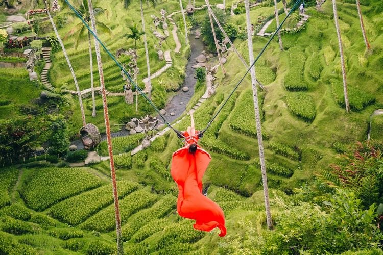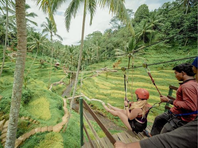 2. Flying Fox at Alas Harum – Soar through the air on a Flying Fox zipline for an adrenaline rush above Bali’s lush landscapes.