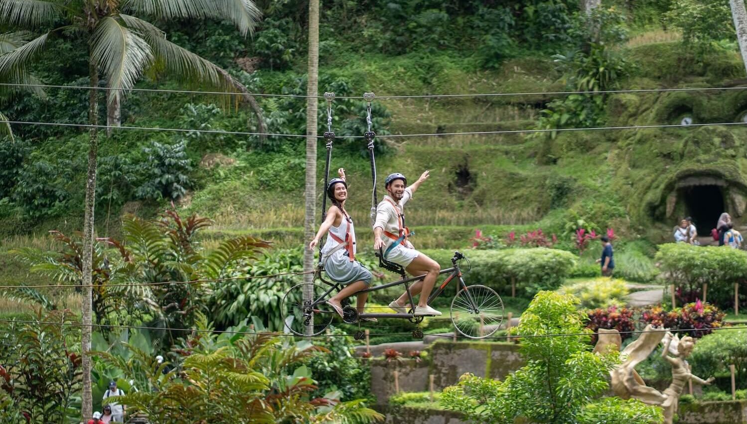 1. Sky Bike at Alas Harum – Ride a unique bike suspended in the air, offering amazing views of the rice terraces and surrounding nature.